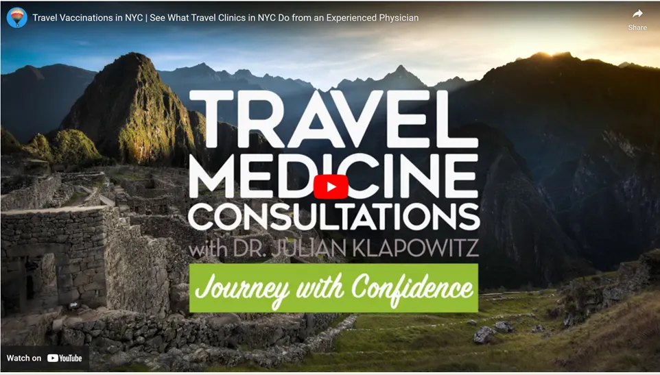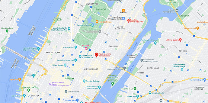 All travel medicine consultations are performed personally by our doctor in a private office setting in our convenient New York City location. The information, vaccinations (such as Yellow Fever, Typhoid, and Japanese Encephalitis), and prescriptions provided are based on the details of your specific trip, what you are doing during that trip, and your health history.